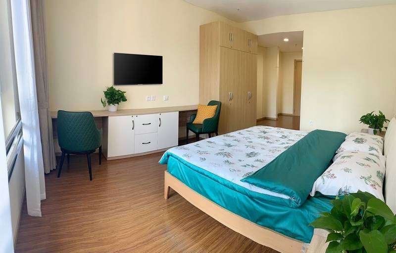 采用U字型庭院设计,由北楼、东楼和西楼三幢大楼组成,每栋楼均配备电梯,方便长辈上下楼,规避出行风险。住宿房型丰富,设有单人间、双人间、三人间,全程注重适老化设备设施应用,从细节处彰显人性化关怀。标准间内电视、电话、冰箱、洗衣机、中央空调、宽带、呼叫系统、高档家具等生活设施一应俱全,无需额外添置物品,长辈拎包即可入住,快速适应新环境。庭院内环境雅致,绿植环绕,为长辈提供舒适的休憩与活动空间,闲暇时漫步庭院,感受岁月静好。